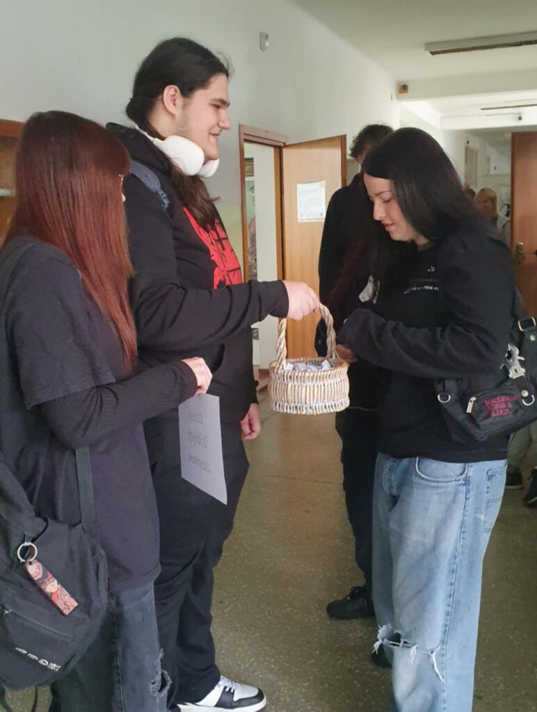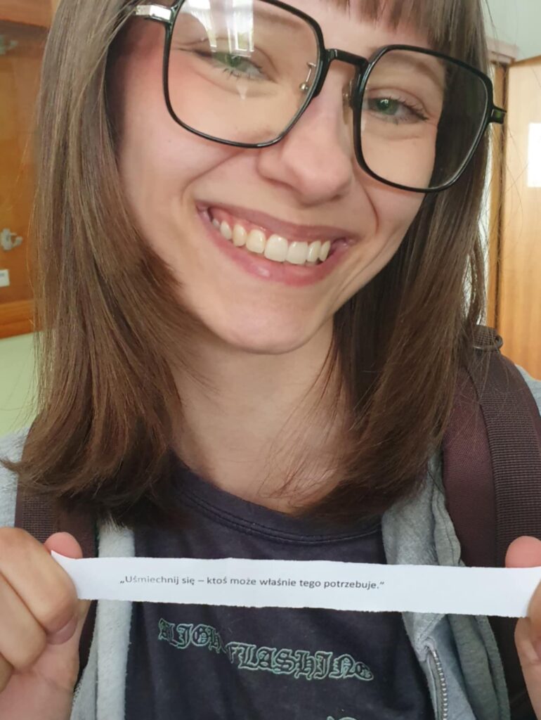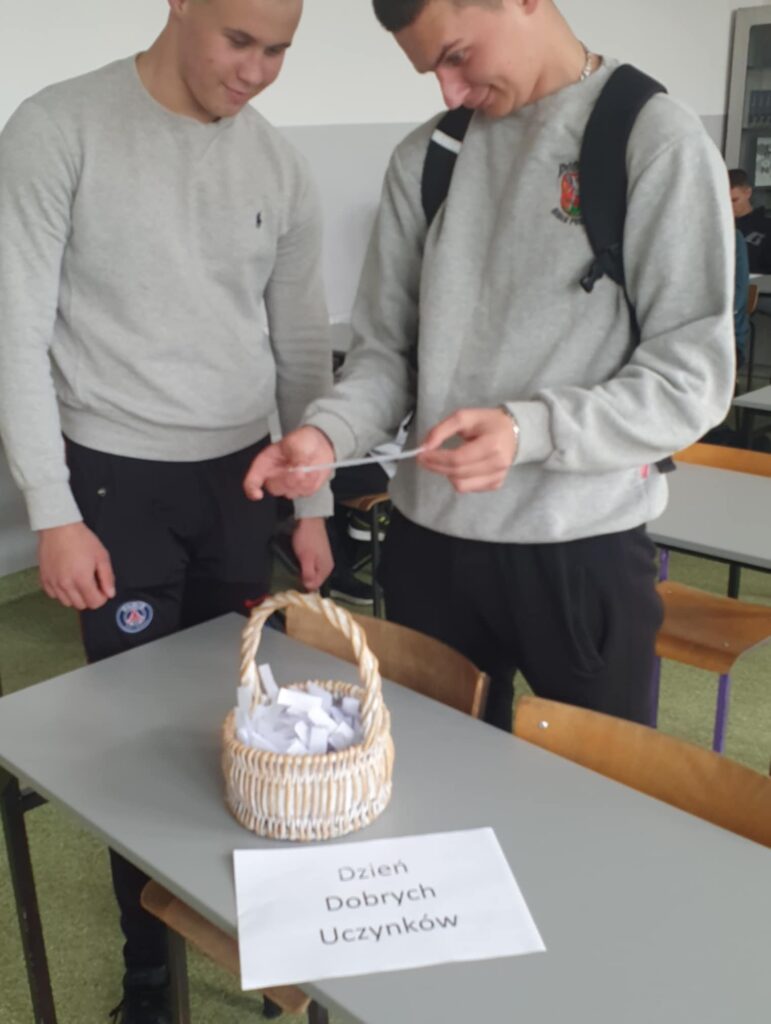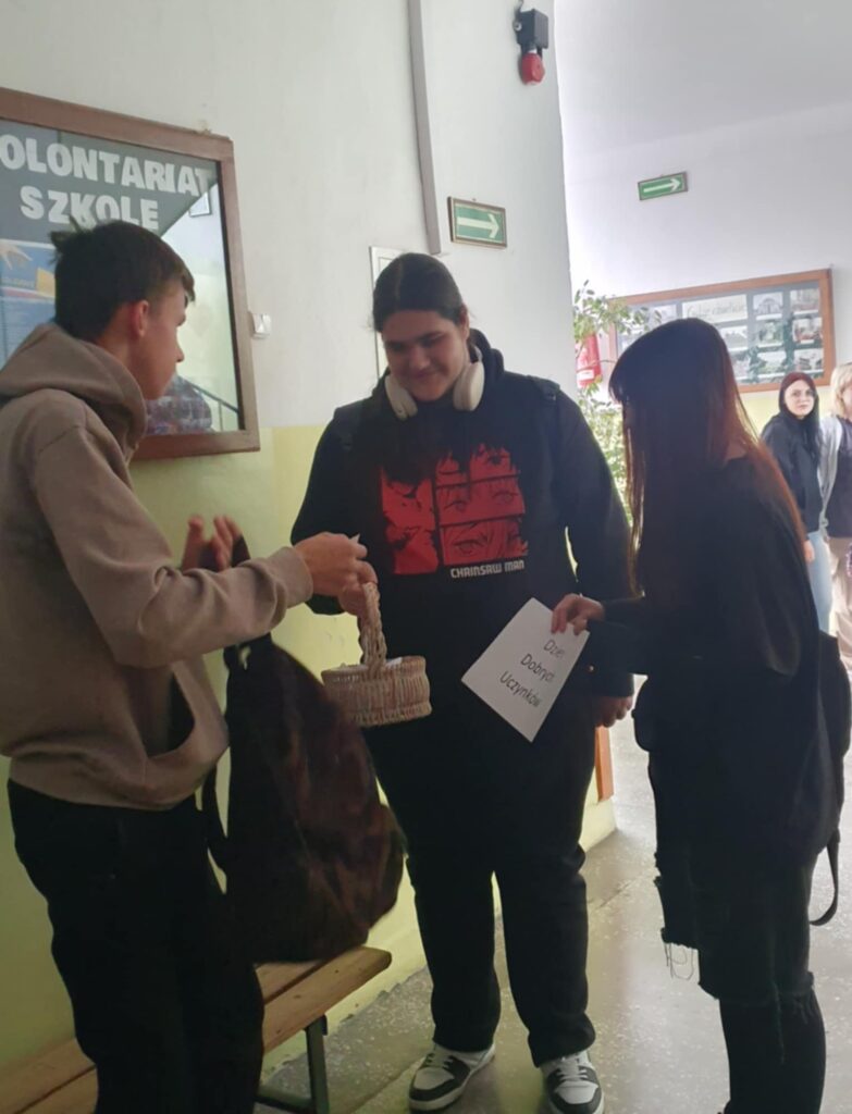 Tego dnia uczniowie mieli również okazję wylosować karteczki z hasłami motywującymi oraz pomysłami na drobne, dobre uczynki, które można wykonać dla drugiego człowieka. Wiele z tych przesłań trafiło prosto w serce i wywołało uśmiech na twarzy.