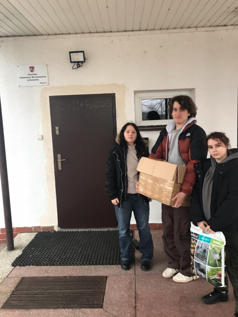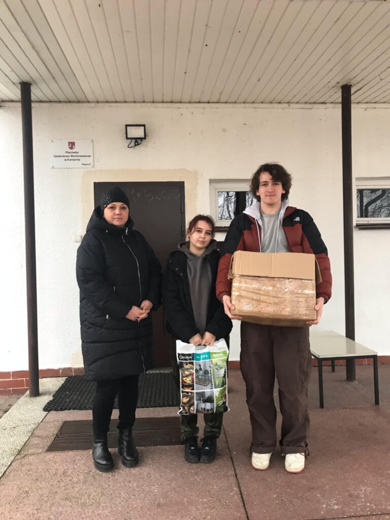 17 stycznia 2025 r. uczniowie klasy 4 TG wraz z opiekunem, panią Małgorzatą Wawrycą, odwiedzili Placówkę Opiekuńczo-Wychowawczą w Komarnie, aby przekazać artykuły zebrane podczas akcji „Paczuszka dla maluszka”.