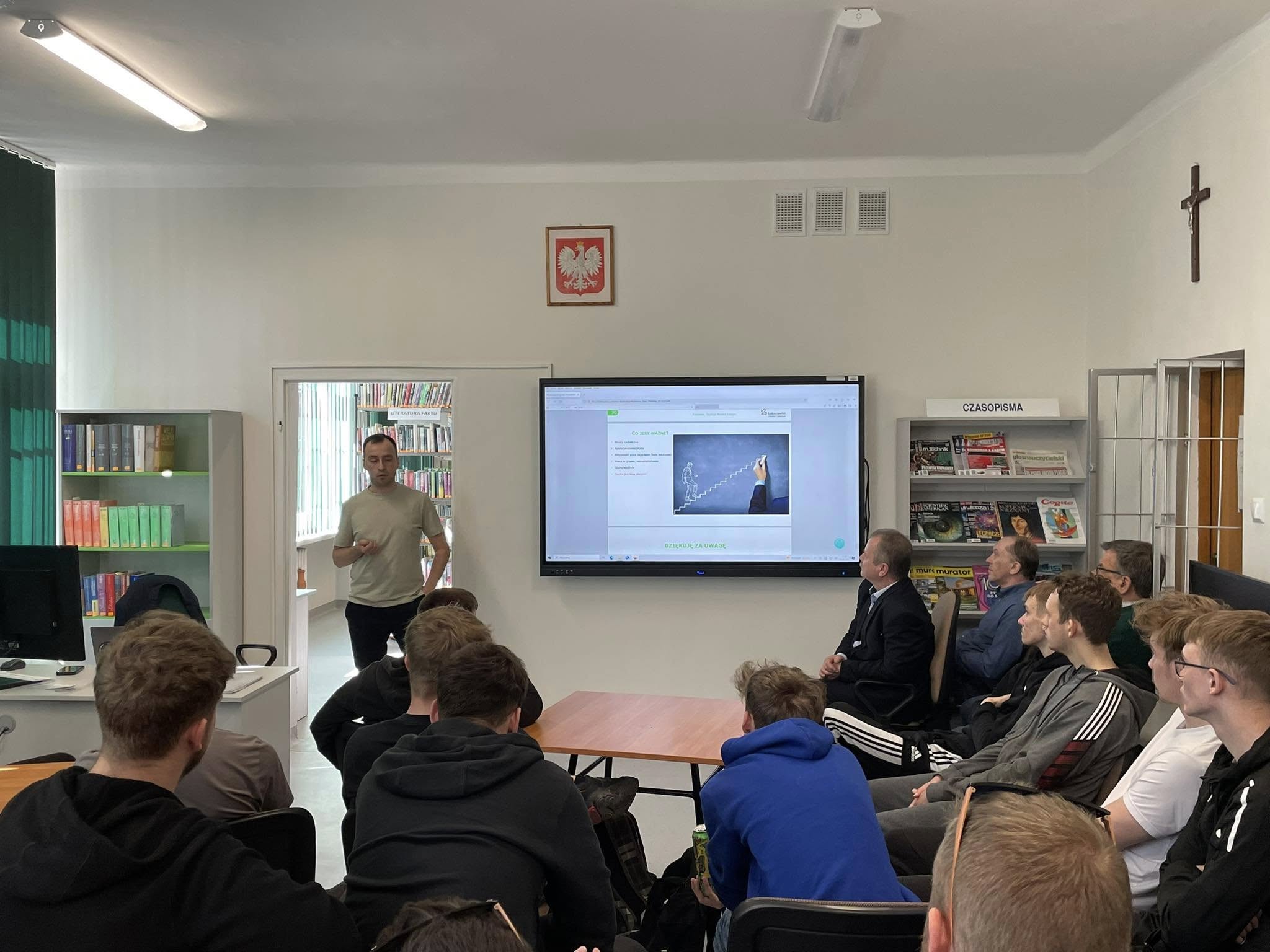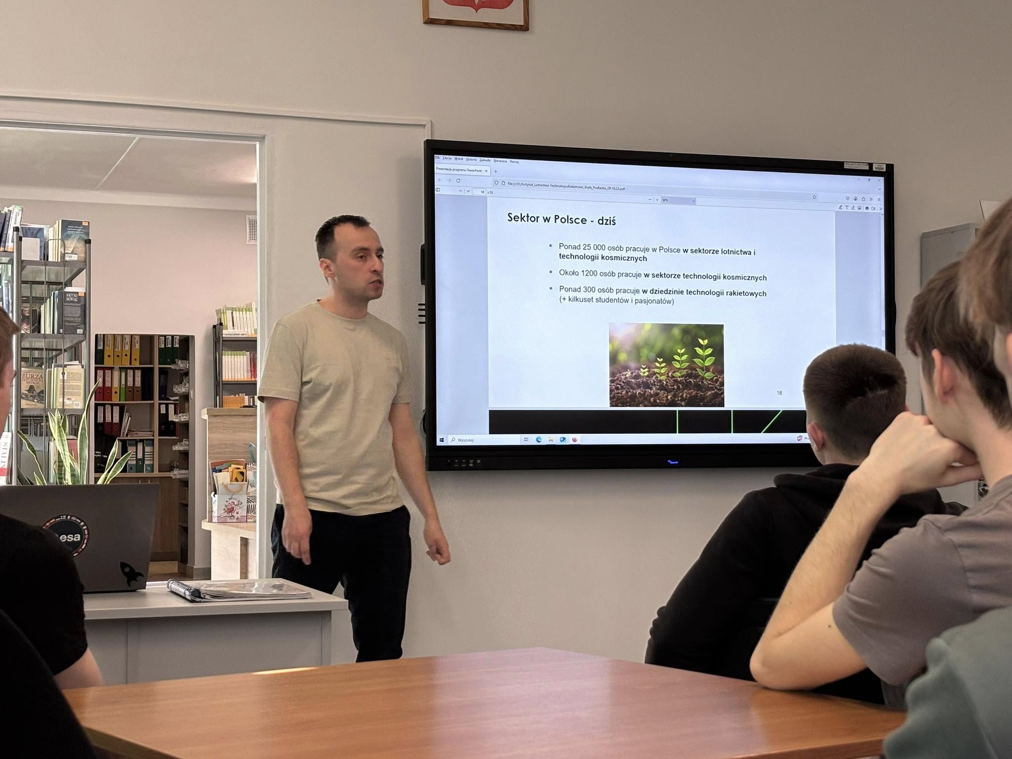 Dawid Cieśliński – Kierownik Sekcji Analiz i Testów Rakiet w Sieci Badawczej Łukasiewicz – Instytucie Lotnictwa – spotkał się z uczniami kierunków technik informatyk, mechatronik i elektryk.