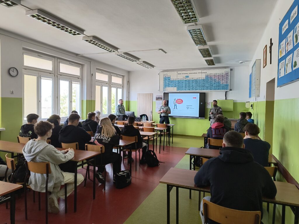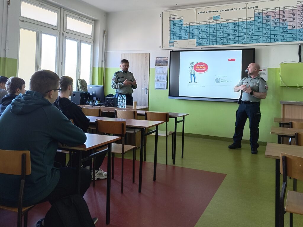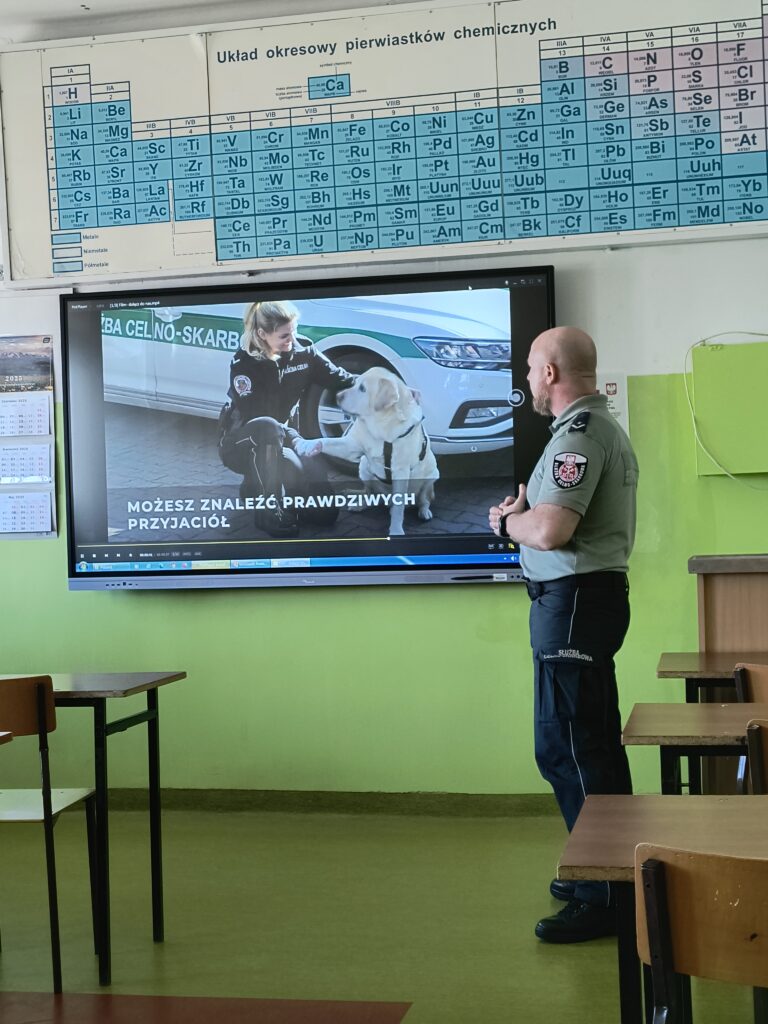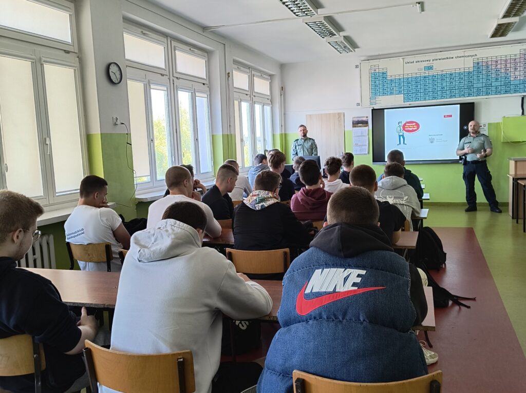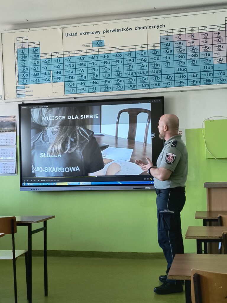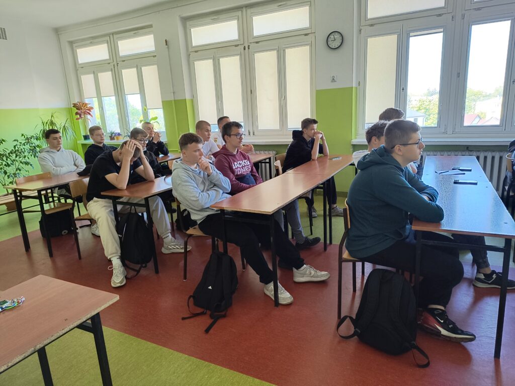 12 maja 2025 r. uczniowie technikum z klas 3 TE, 3 TIM, 4 TI oraz 3 TG wzięli udziału w spotkaniu z przedstawicielami Lubelskiego Urzędu Celno-Skarbowego z Białej Podlaskiej.