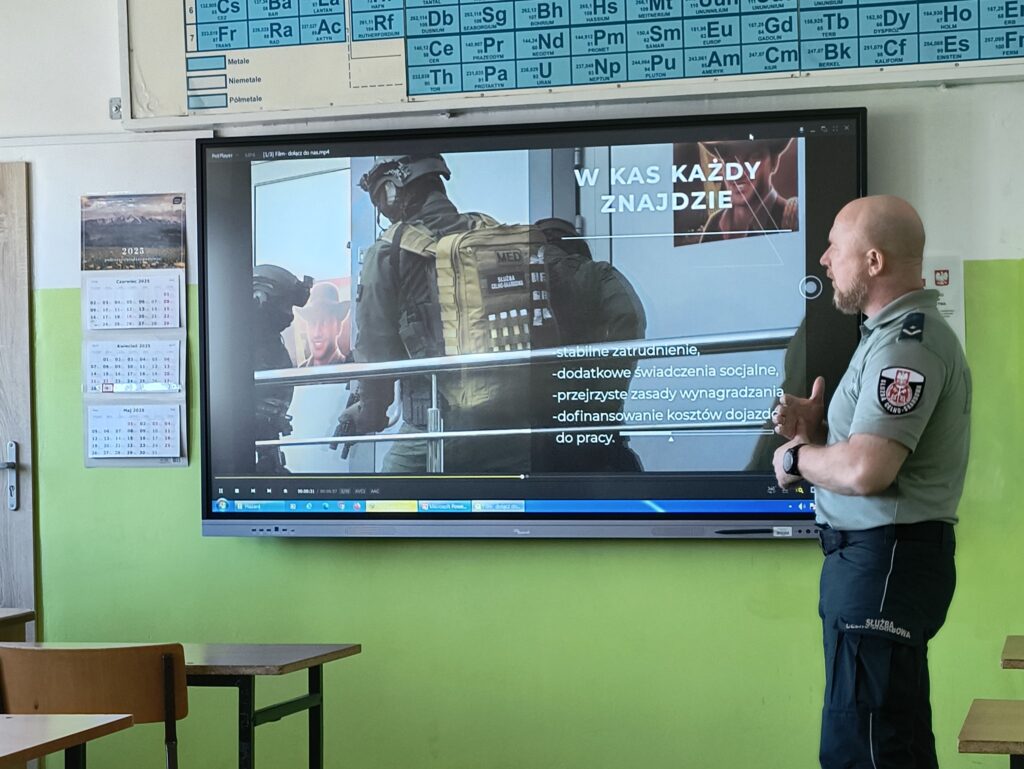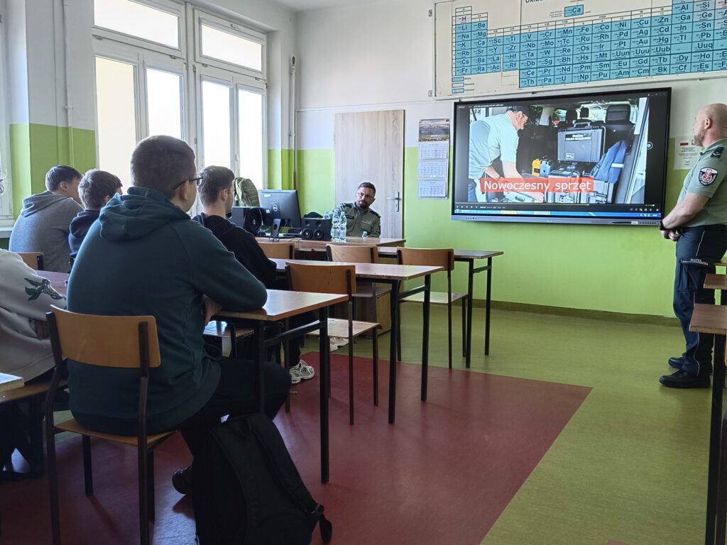 Uczniowie zadawali pytania dotyczące specyfiki pracy w Służbie Celno-Skarbowej. Zainteresowaniem cieszył się temat o towarach, które można przywieźć lub wywieźć za granicę pod określonymi warunkami, a także o tym co jest zabronione, jak również wymaganiach związanych z rekrutacją do służb mundurowych.