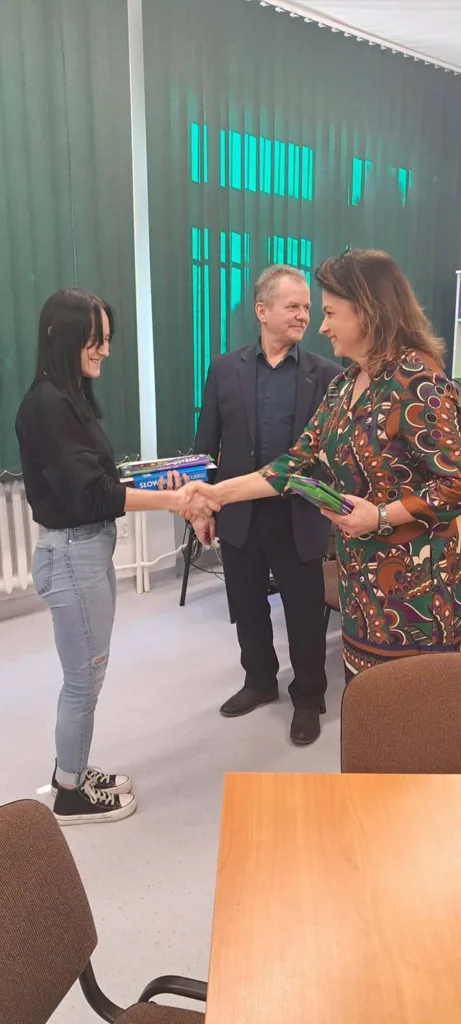 Laureaci otrzymali dyplomy i nagrody książkowe z rąk Pana Dyrektora Ryszarda Dołęgi. Organizatorki wydarzenia panie Marta Makarska-Makaruk i Małgorzata Suszczyńska z dumą podkreśliły, jak cenną w dzisiejszych czasach umiejętnością młodych ludzi jest to, by umieć „odpowiednie dać rzeczy słowo”.