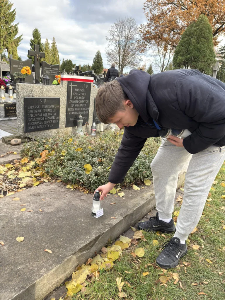 Uczniowie 1TGI (technik grafiki i poligrafii cyfrowej) pod opieką Pani Magdaleny Najdyhor odwiedzili zapomniane groby oraz groby zasłużonych bohaterów zapalając znicz „pamięci”.