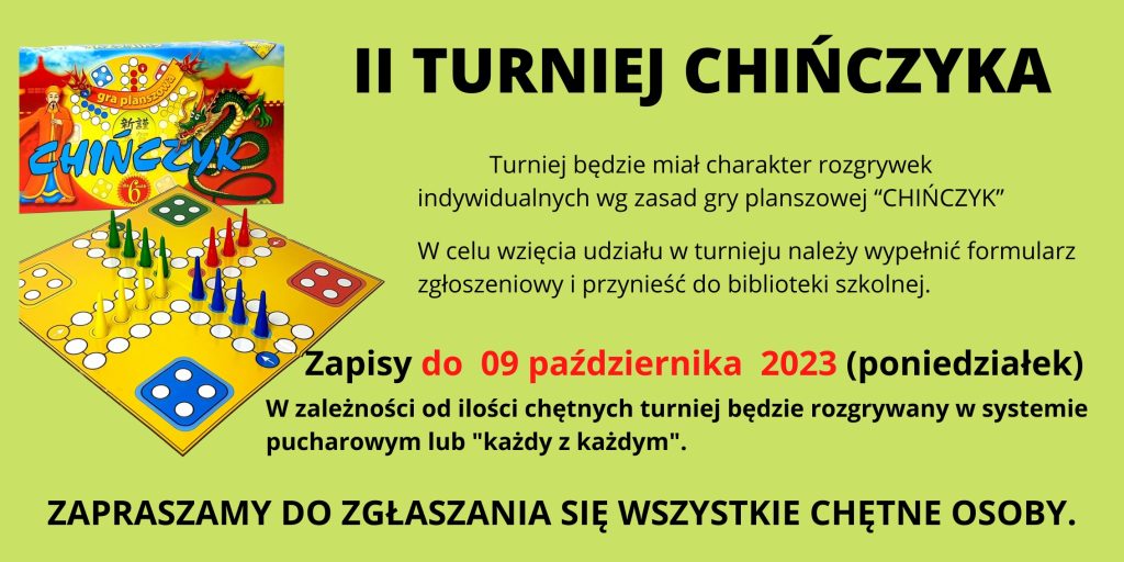 – do 9 października przyjmujemy zgłoszenia na II Turniej Chińczyka,