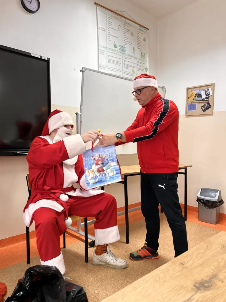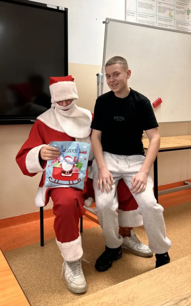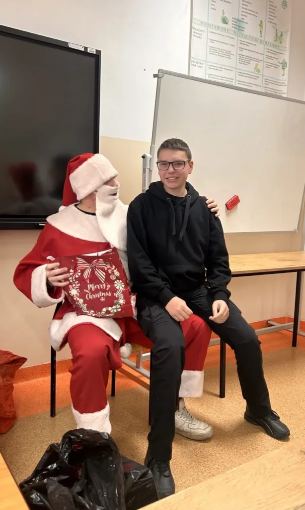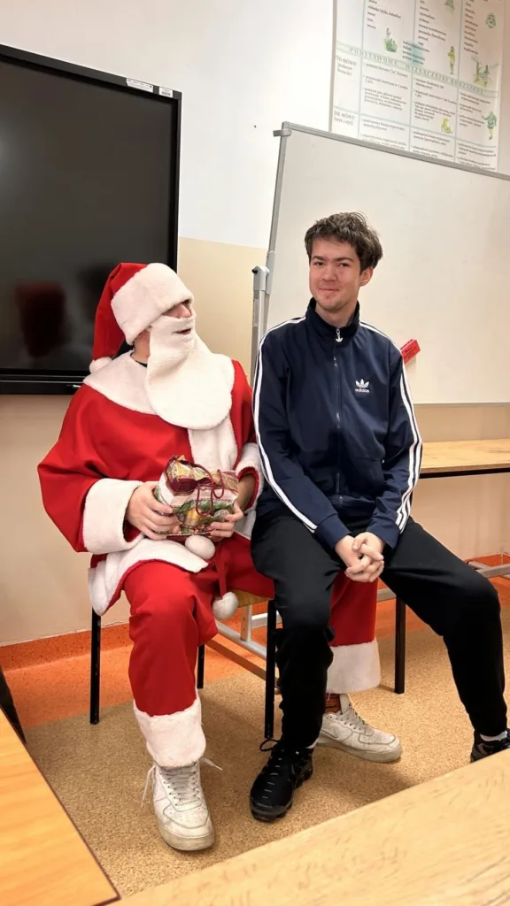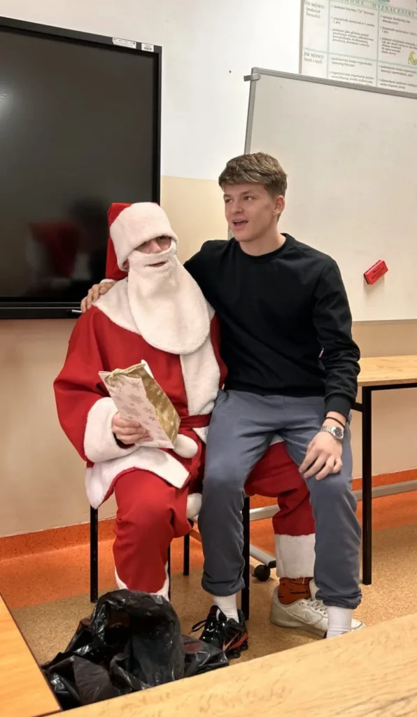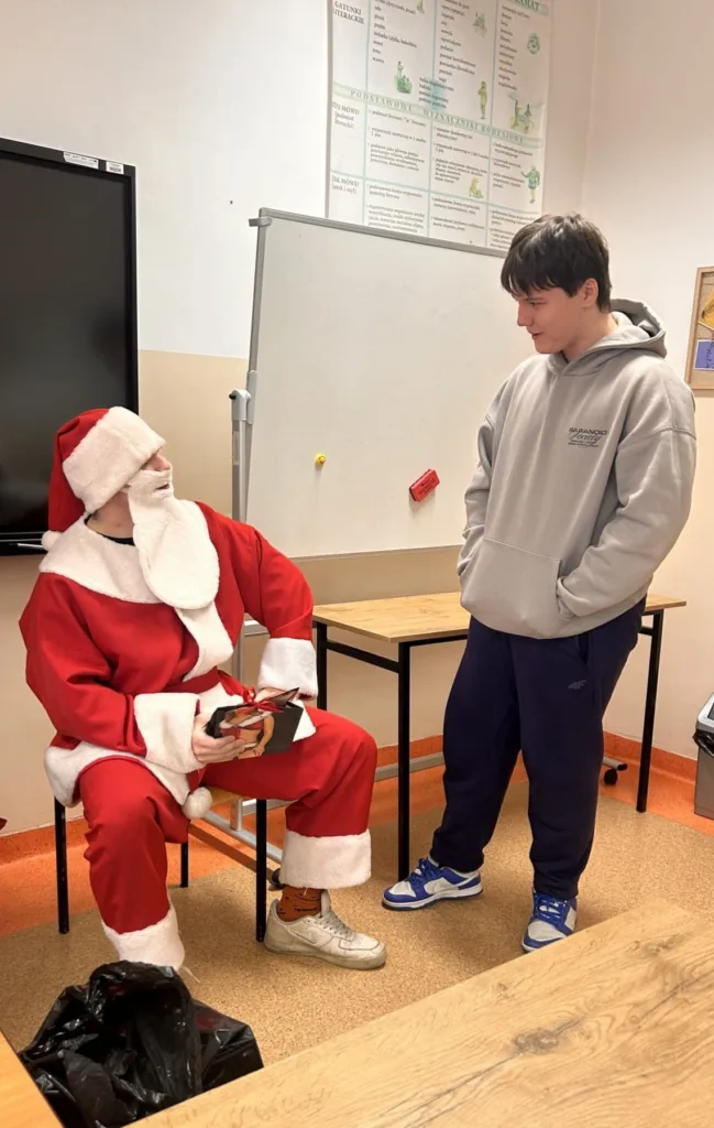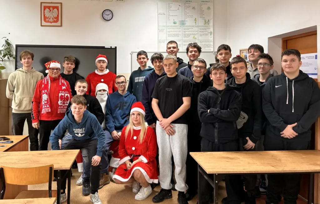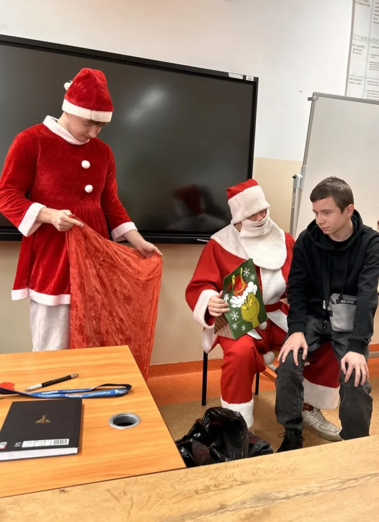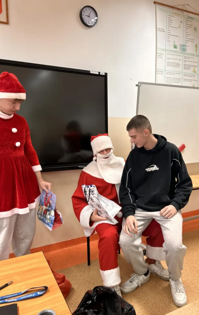 Dnia 5 grudnia w klasie 1 TS1 odbyły się Mikołajki. Zgodnie z tradycją każdy uczeń oraz wychowawca przygotował upominek wylosowanej wcześniej osobie. Prezenty wręczał przybyły z Laponii Mikołaj w asyście swoich pomocników. Każdy obdarowany musiał zaprezentować Mikołajowi wierszyk, piosenkę, kolędę i itp. Wszyscy bawili się przednio i mieli świąteczny humor.