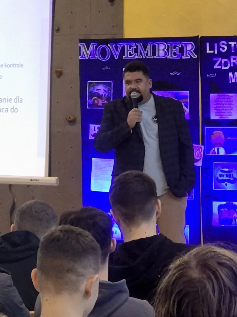 Kolejny raz w naszej szkole odbyło się coroczne spotkanie młodzieży z urologiem, tym razem był to specjalista chirurgii ogólnej i specjalista urologii pan Kamil Kur. W ramach rozmowy poruszono tematy związane z akcją MOVEMBER, profilaktyką zdrowia mężczyzn oraz wczesnym wykrywaniem chorób nowotworowych, szczególnie raka jąder i raka prostaty.