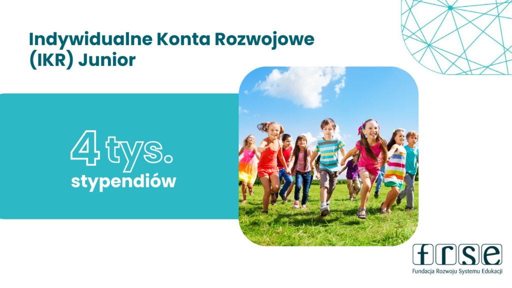 | 2 czerwca 2025 r. ruszył pierwszy ogólnopolski nabór wniosków do projektu Indywidualne Konta Rozwojowe (IKR) Junior. Projekt Indywidualne Konta Rozwojowe (IKR) Junior to unikalna inicjatywa skierowana do uczniów szkół ponadpodstawowych. Misją projektu jest wspieranie dzieci i młodzieży z rodzin o niskich dochodach oraz umieszczonych w pieczy zastępczej, umożliwiając im rozwijanie talentów i zainteresowań poprzez realizację różnorodnych zajęć dodatkowych. Łączna wysokość stypendium na jednego ucznia lub uczennicę wyniesie max.15 000 zł brutto. złóż wniosek>> Nabór wniosków trwa do 16 czerwca 2025 r. godz. 15:59:59, z zastrzeżeniem, że rekrutacja zostanie zamknięta po wpłynięciu 4500 wniosków. więcej o projekcie >> Osoby zainteresowane naborem zapraszamy na spotkanie online dot. naboru, które odbędzie się 6 czerwca w godz. 10:30-12:00. zarejestruj się >> W przypadku dodatkowych pytań dotyczących organizacji spotkania prosimy o kontakt mailowo na adres: ikr.junior@frse.org.pl Regulamin rekrutacji i uczestnictwa w projekcie: |