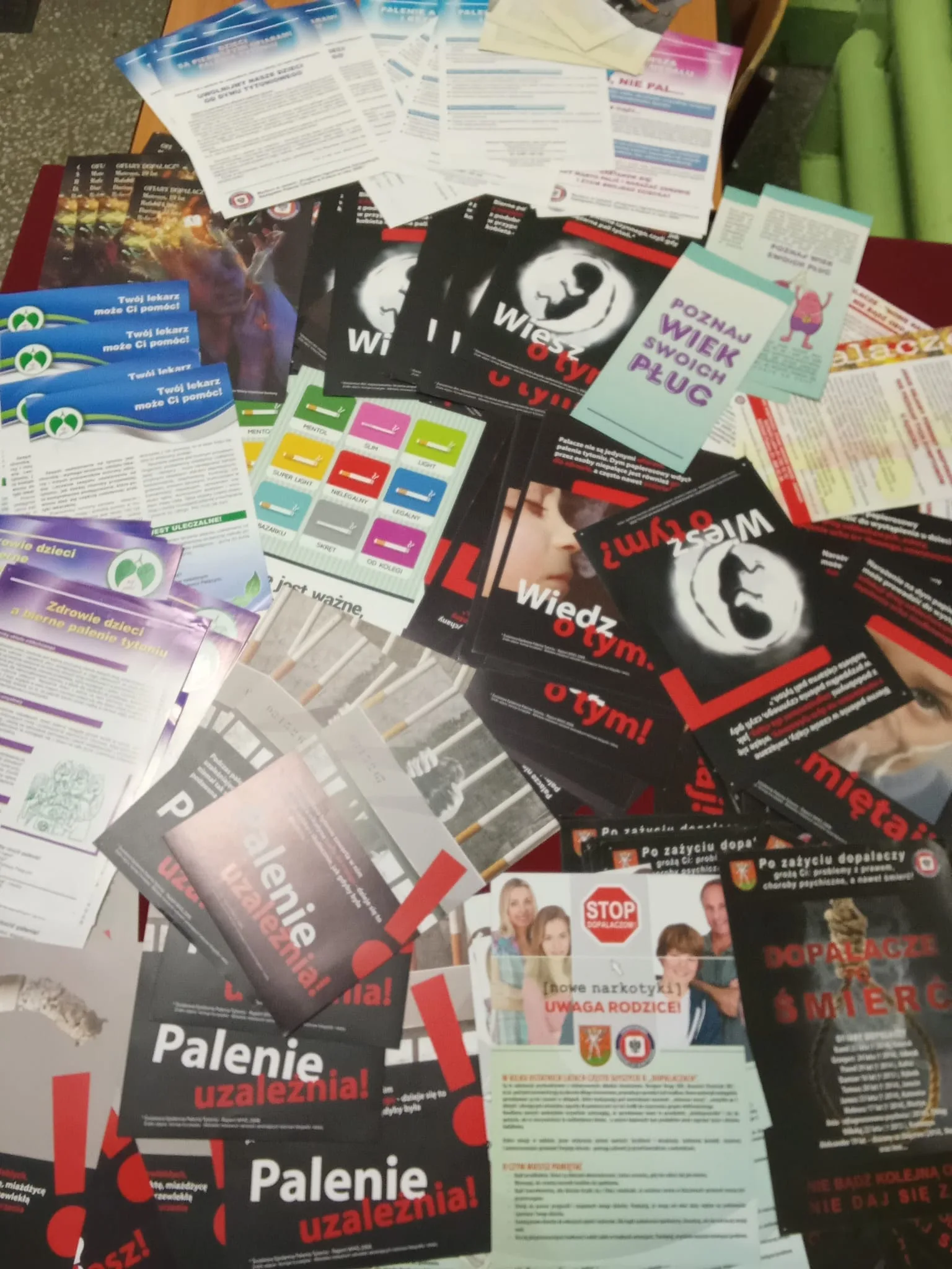 Z tej okazji Szkolny Zespół d/s Zdrowia zorganizował akcję informacyjną. Młodzież mogła poszerzyć swoją wiedzę o wpływie palenia papierosów i e-papierosów na zdrowie, obejrzeć film „Rzuć palenie” oraz wziąć udział w testach uzależnienia od tytoniu. Rozdawane były ulotki tematyczne i humorystyczne teksty, które skutecznie przekonywały, że palenie nie sprzyja zdrowemu stylowi życia.