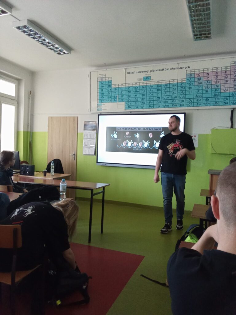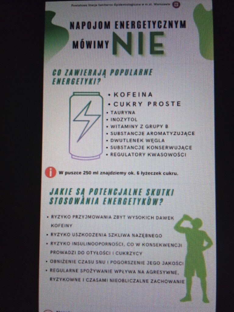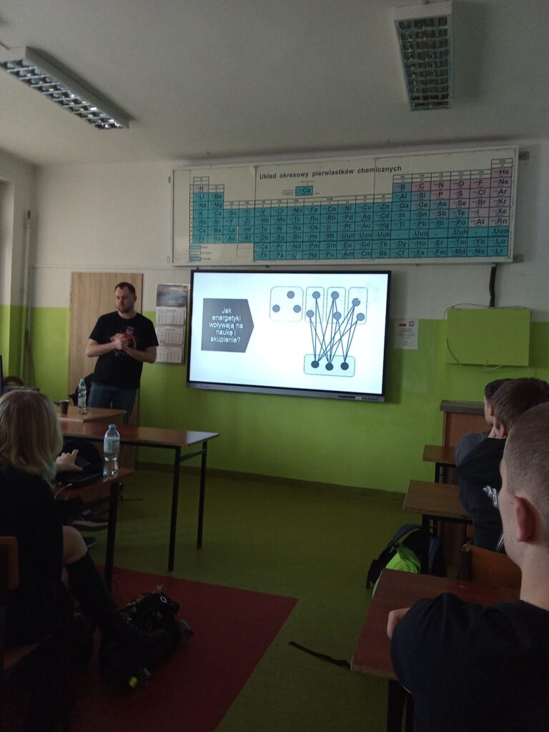 W naszej szkole, 29 kwietnia 2025 r., Szkolny Zespół ds. Zdrowia zorganizował dwie edukacyjne prezentacje na temat wpływu napojów energetyzujących i dopalaczy na organizm człowieka . Spotkania przygotował i poprowadził Pan Sebastian Niczyporuk z Oddziału Pulmonologii Wojewódzkiego Szpitala Specjalistycznego w Białej Podlaskiej.