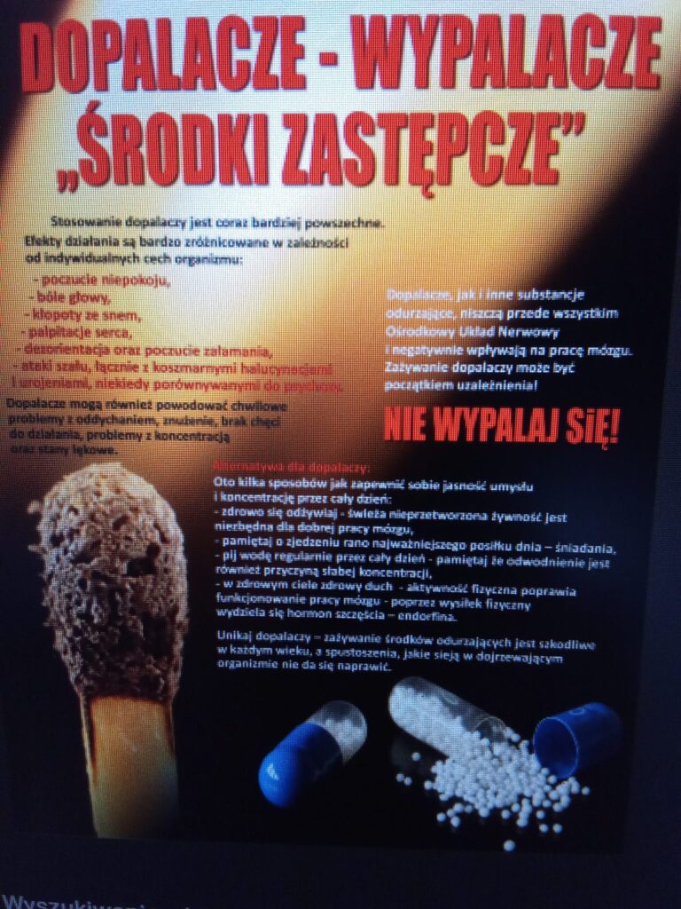 Młodzież klas 2TIM, 2TBG, 2S i 2TE miała okazję poszerzyć swoją wiedzę oraz usłyszeć o negatywnych skutkach stosowania używek i środków pobudzających .