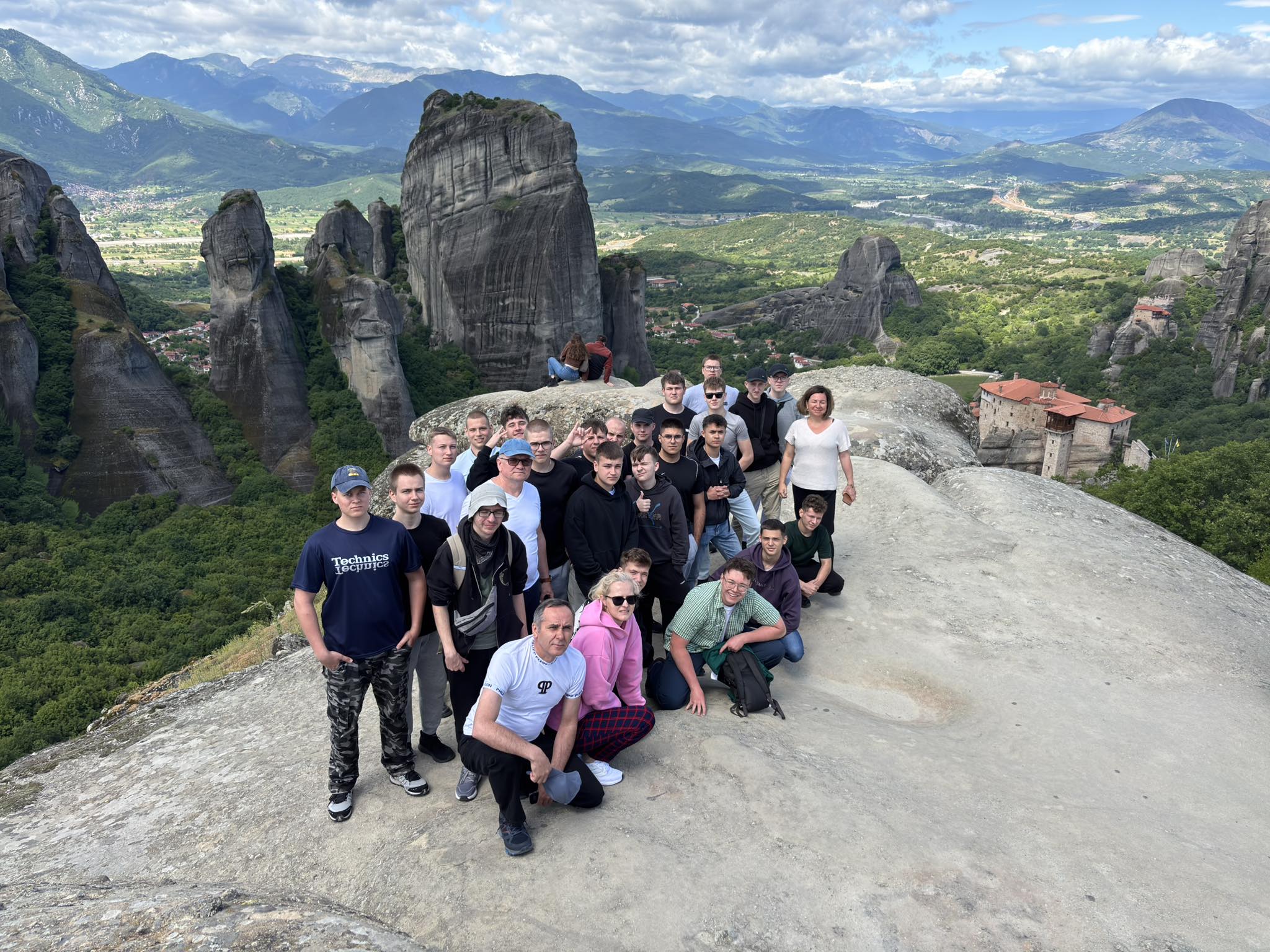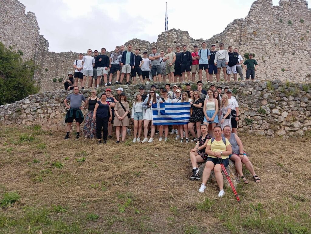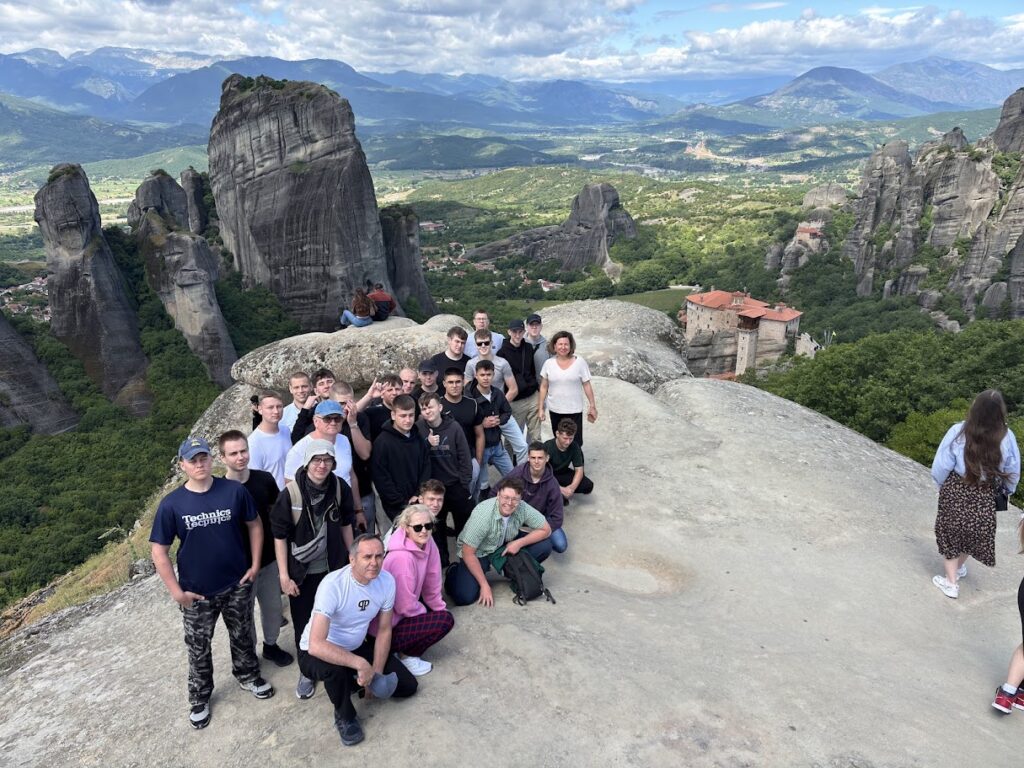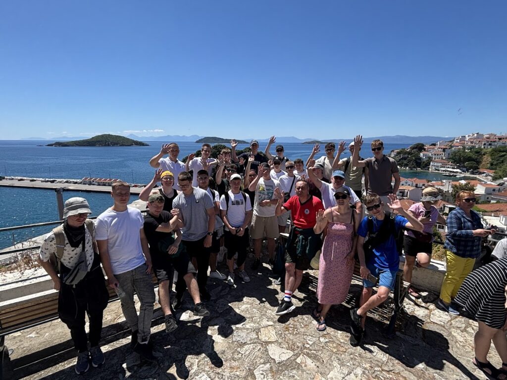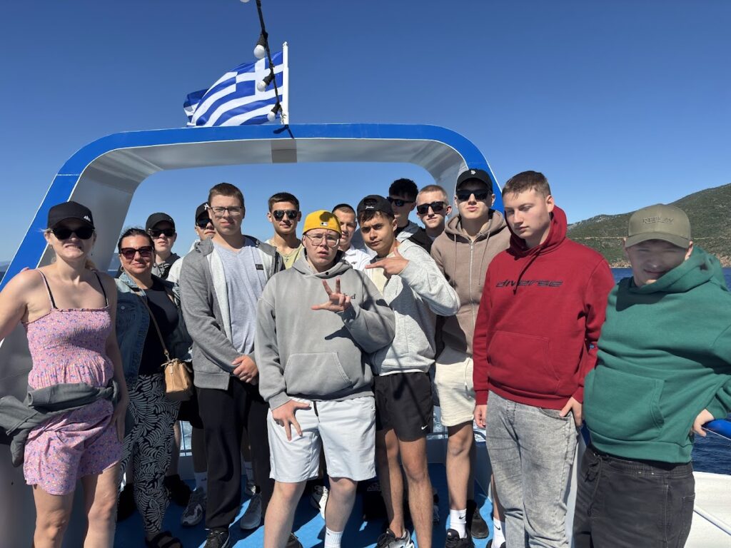 Podczas pobytu uczniowie mieli również okazję uczestniczyć w ciekawych wycieczkach turystycznych, które wzbogaciły ich doświadczenia i pozwoliły poznać różnorodne oblicza Grecji. Odwiedzili m.in. Platamonas oraz Larissę, odbyli rejs statkiem na malowniczą wyspę Skiathos, zwiedzili jeden z klasztorów w słynnych greckich Meteorach, a także przeszli spacer wąwozem, by zobaczyć legendarną „wannę Afrodyty” w Litohoro. Nie zabrakło też wizyty w historycznym Starym Pantelejmonie. Te wycieczki pozwoliły uczniom nie tylko na chwilę odpoczynku, ale i głębsze poznanie kultury, historii oraz przyrody regionu.