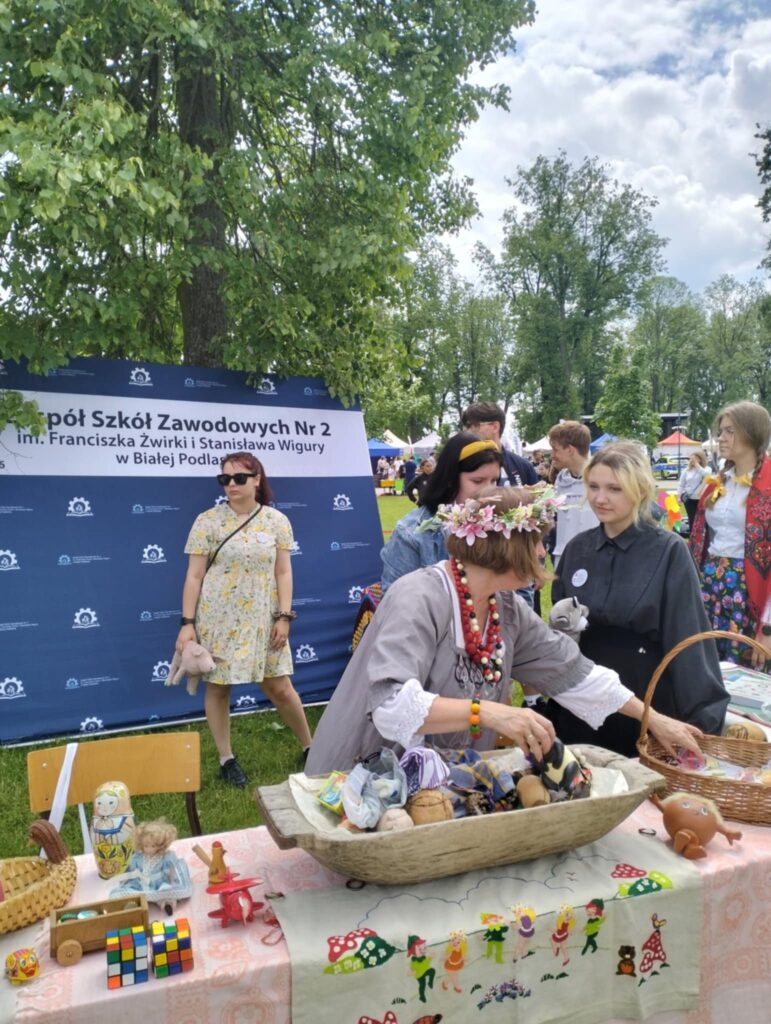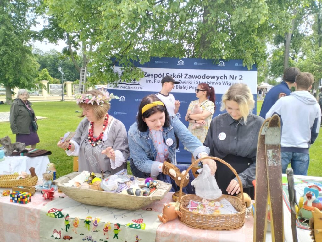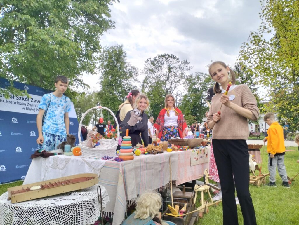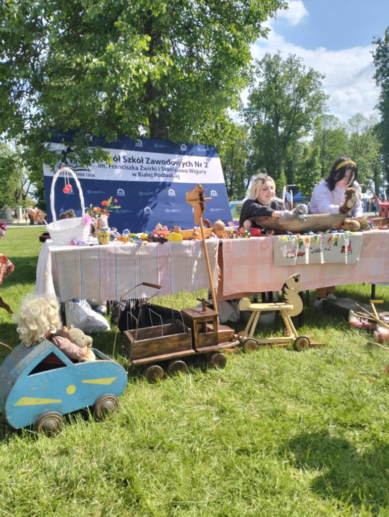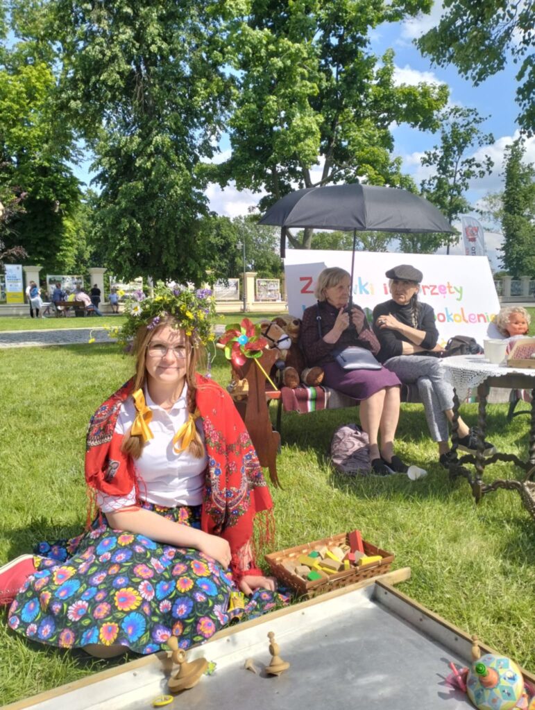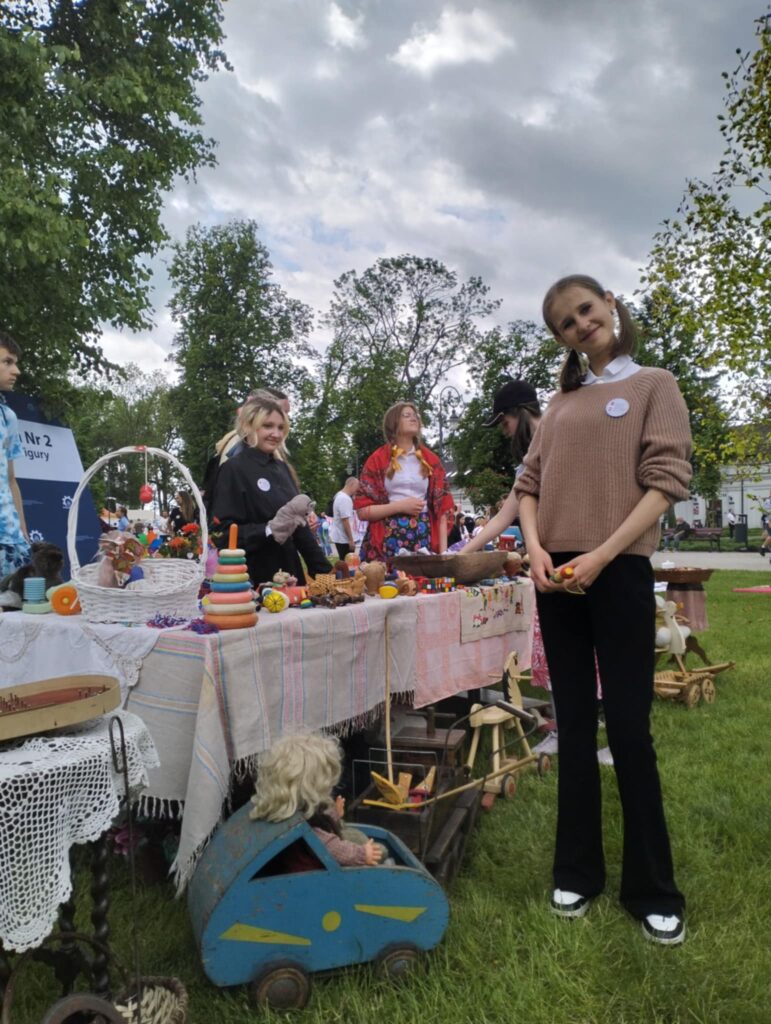 Nasi nauczyciele pani Ewa Piech i pani Marta Makarska-Makaruk wraz z uczniami, włączyły się do zabawy poprzez przypomnienie dawnych zabawek np. bączka, cygi i frygi. Na przygotowanym stanowisku można było zobaczyć wiele innych dawnych zabawek i sprzętów, które cieszyły oko niejednego uczestnika.