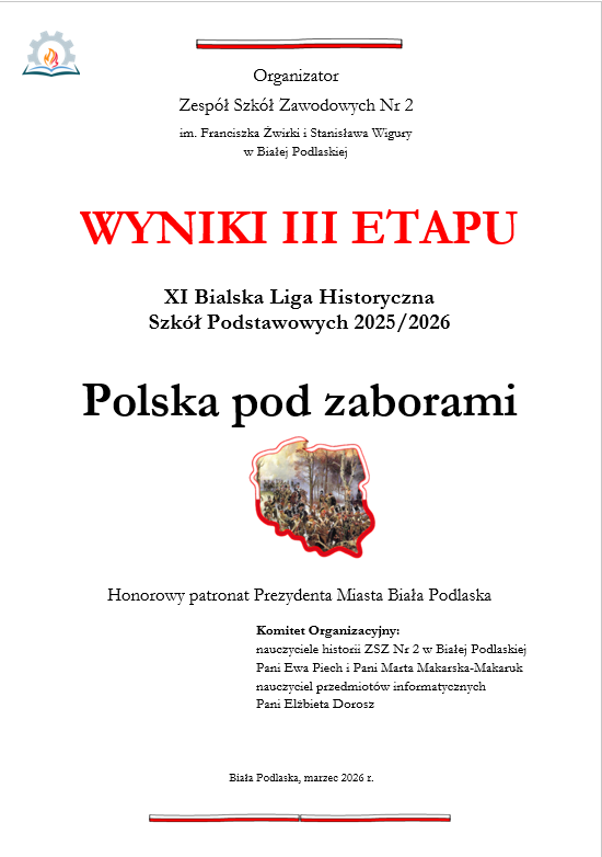 Do udziału w XI Bialskiej Lidze Historycznej Szkół Podstawowych zgłosiło się 128 uczniów z 16 szkół. Dziesięciu najlepszych uczniów w każdej kategorii wiekowej, zostało nagradzanych punktami. Przedstawiamy wyniki wszystkich uczestników III etapu Ligi.