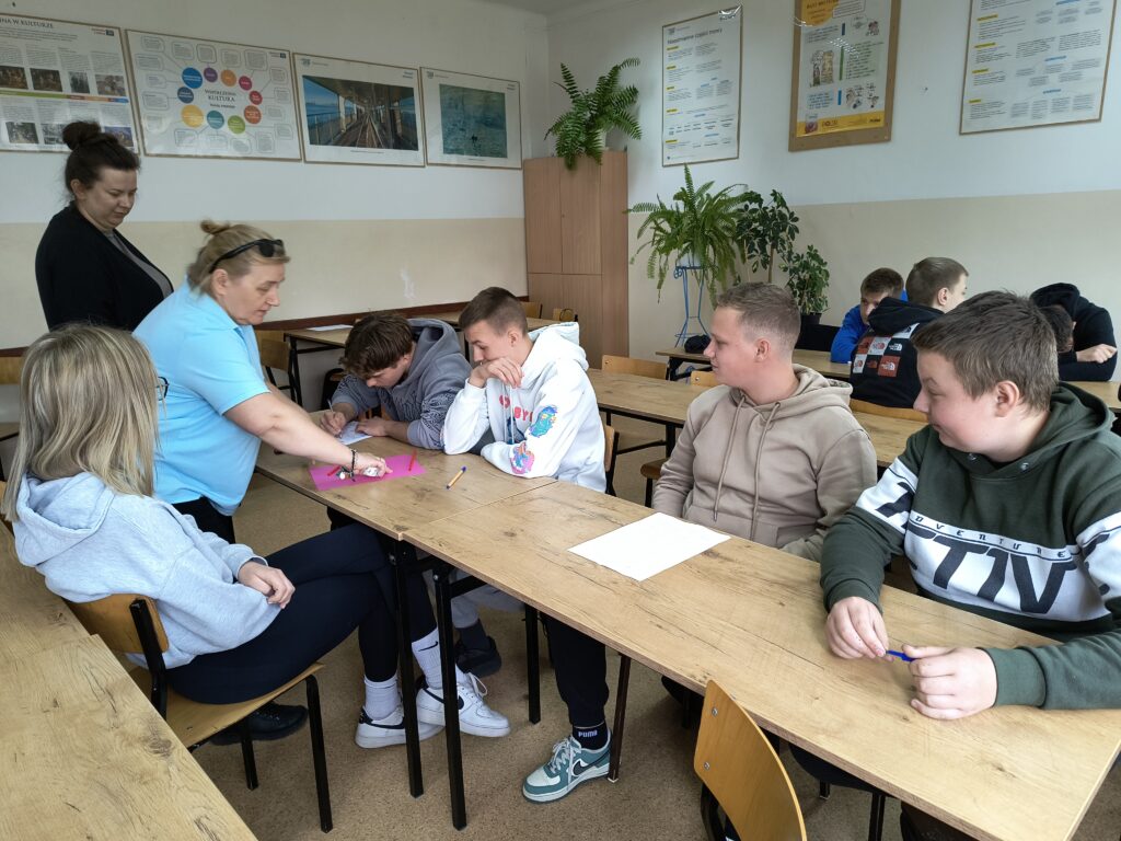 „Samopoznanie – moje mocne strony” to temat zajęć, które poprowadziła Pani Dorota Sorbian-Przybysz i Pani Agata Szaniawska-Trochonowicz z Mobilnego Centrum Informacji Zawodowej OHP z Białej Podlaskiej. Podczas spotkania uczniowie wypełnili kwestionariusze na temat samopoznania i mocnych stron. Wyniki testów są pomocne w identyfikacji i zrozumieniu swoich talentów i pozytywnych cech, w przyszłości mogą pomóc w trafniejszym wyborze zawodu, czy lepiej zaprezentować się podczas rozmowy kwalifikacyjnej.