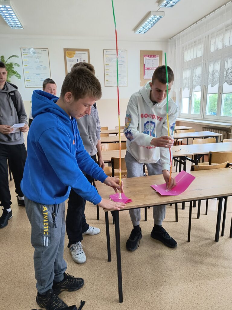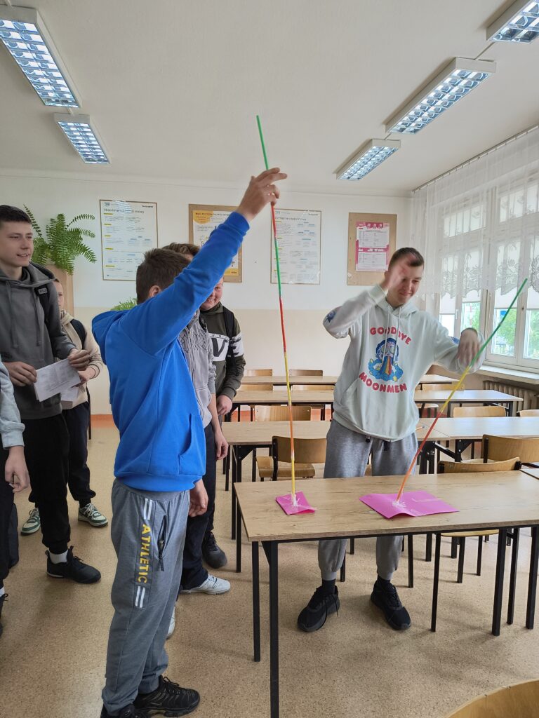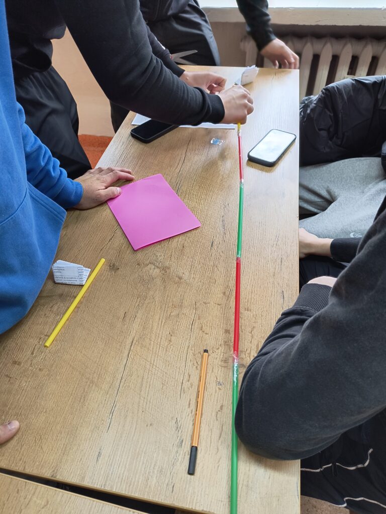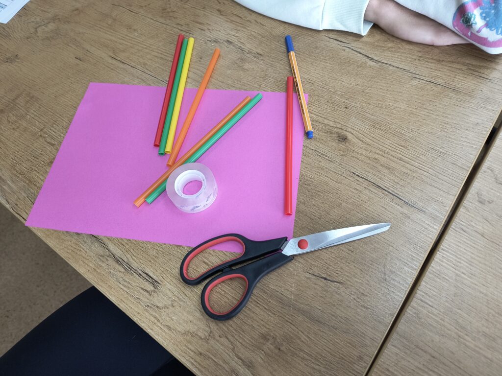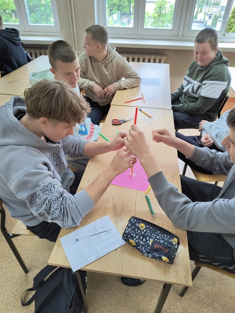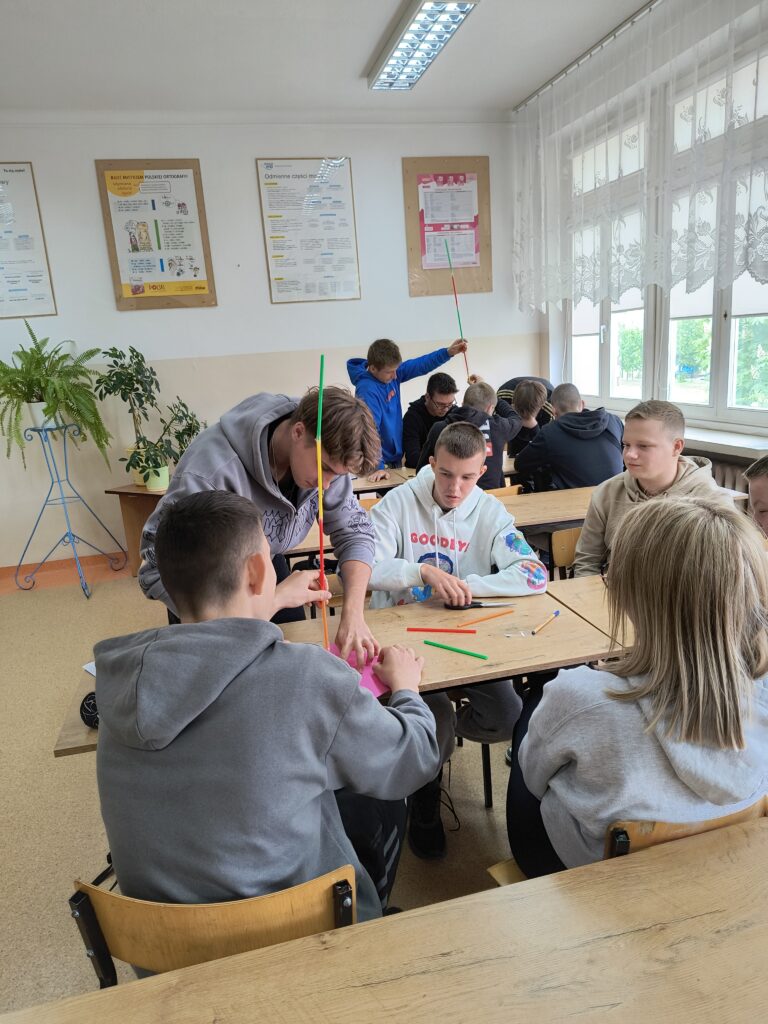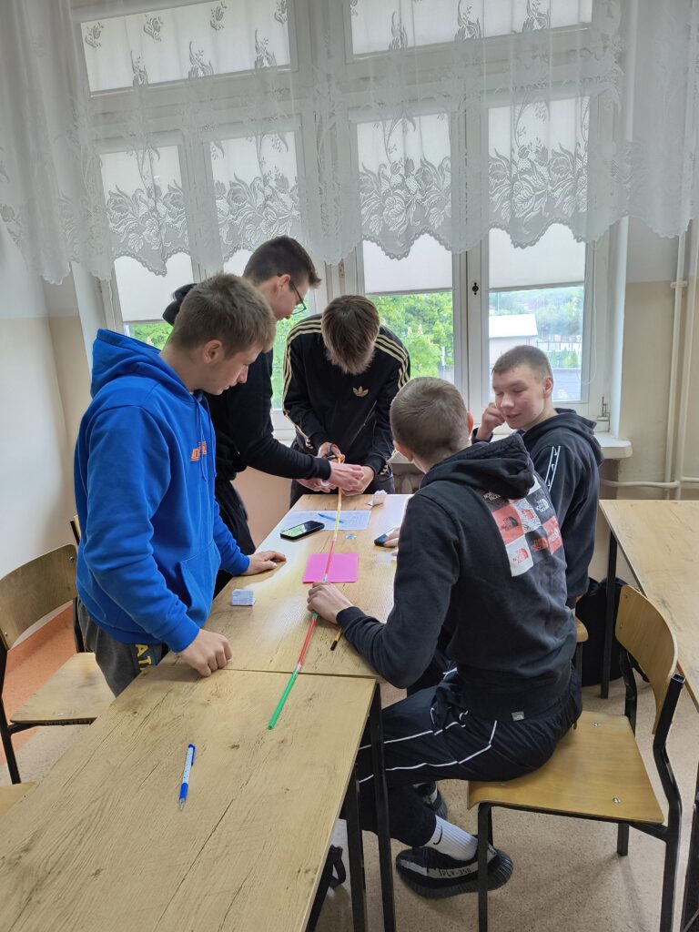 Na koniec spotkania uczniowie podzieleni na dwa zespoły mieli zbudować wieże, mając do dyspozycji tylko słomki i taśmę klejącą, nożyczki i kartkę papieru formatu A4. Wieże miały samodzielnie stać na ławce. Celem tego ćwiczenia było rozwijanie współpracy, komunikacji i kreatywności, a także wzmocnienie więzi w zespole.