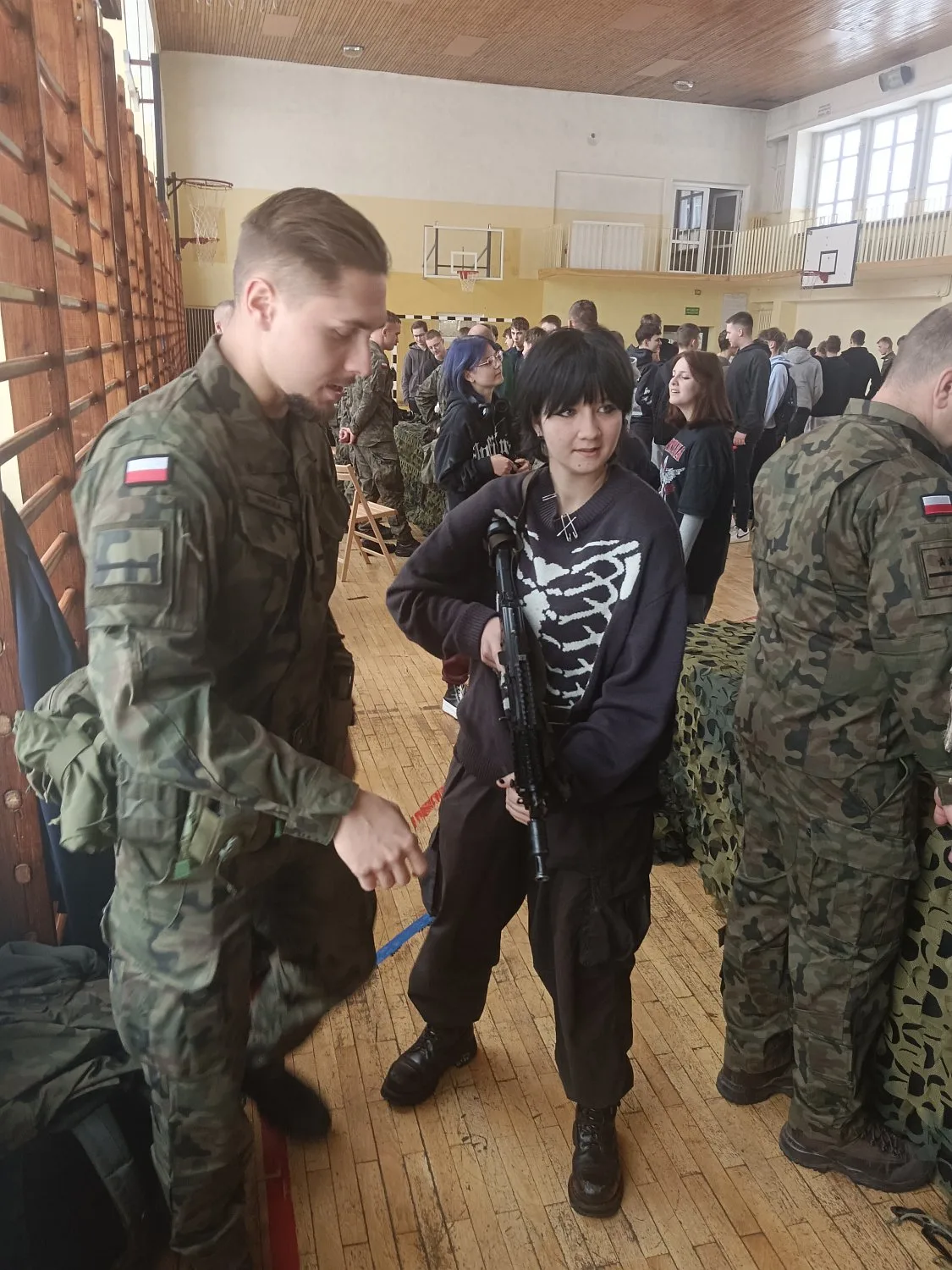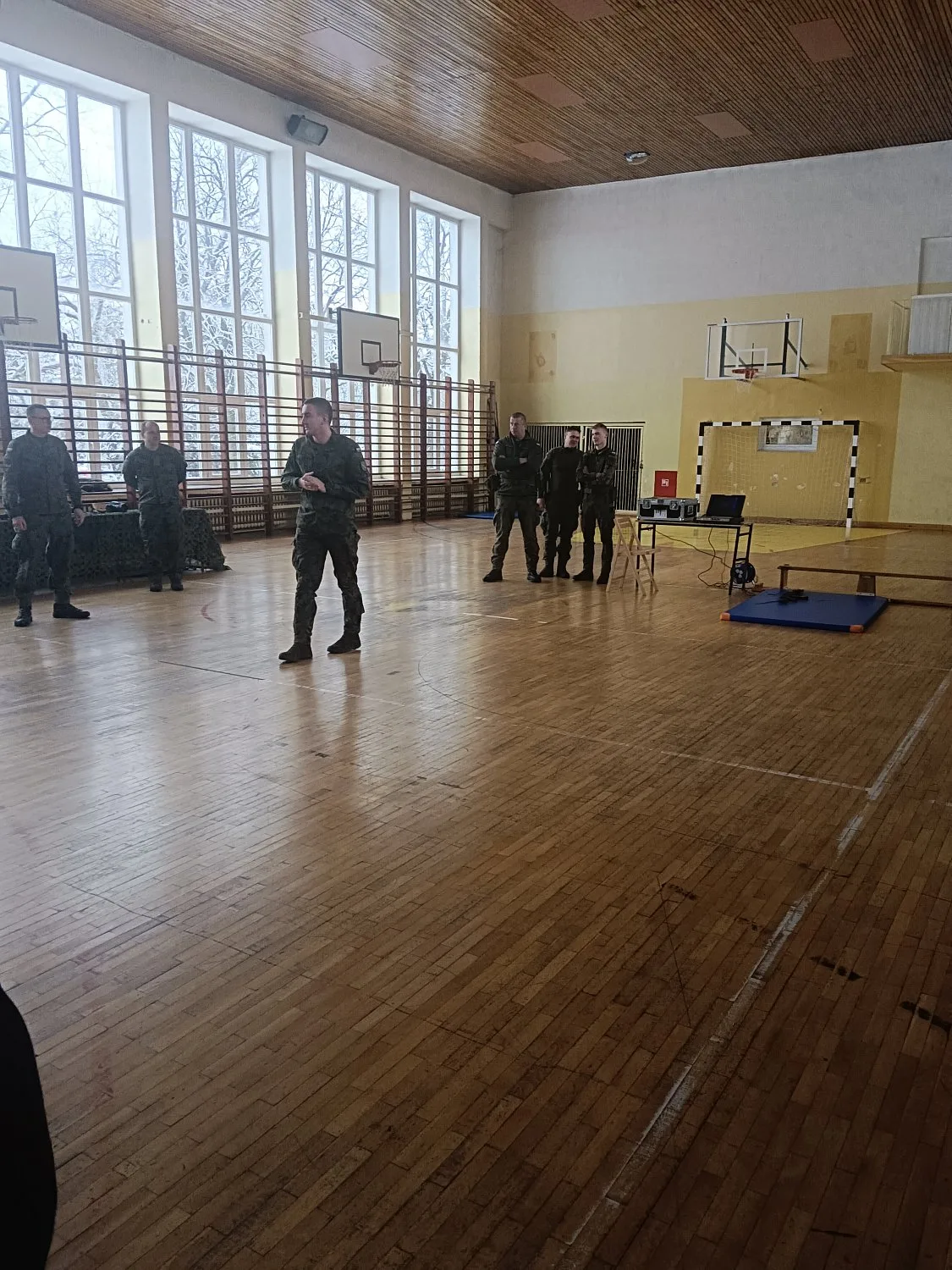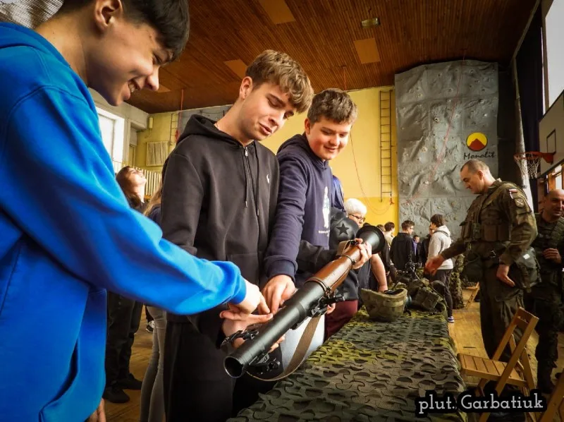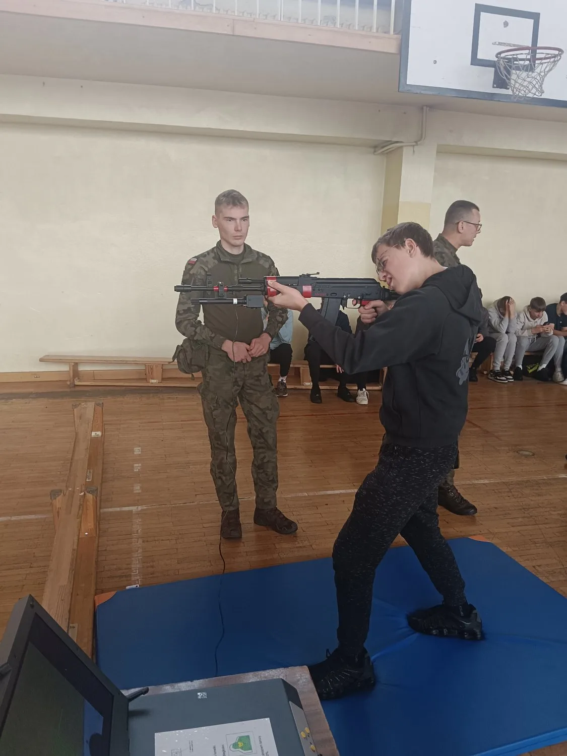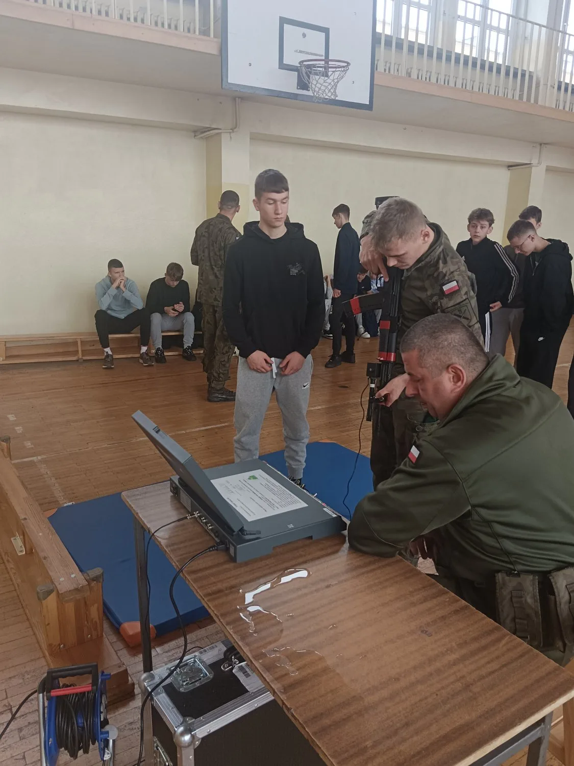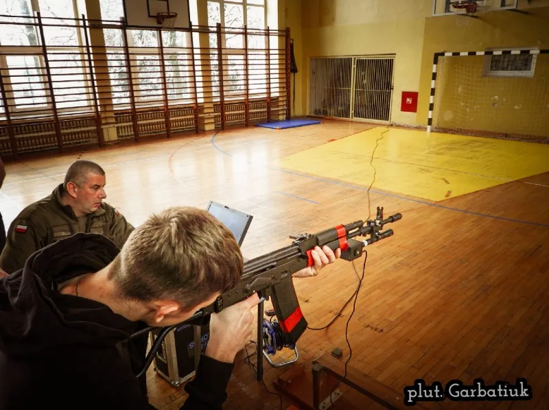 W sali sportowej Zespołu Szkół Zawodowych Nr 2 im. F. Żwirki i S. Wigury w Białej Podlaskiej miały miejsce zajęcia przygotowujące do nauki celowania na trenażerze „CYKLOP”.