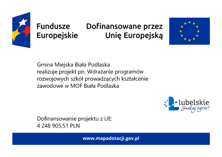 Miasto Biała Podlaska inwestuje w przyszłość młodzieżyWdrożenie programów rozwojowych szkół zawodowych w MOF Biała Podlaska